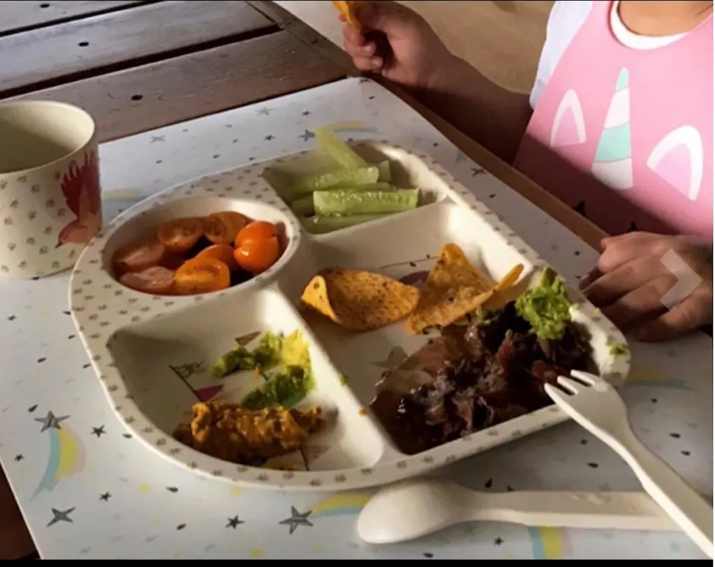 - 🌿 NON TOXIC AND ECO FRIENDLY - This kids dinnerware set is made of high quality organic bamboo fiber and protects your child from BPA and other harmful chemical materials. It's BPA free, biodegradable and environment conservative.